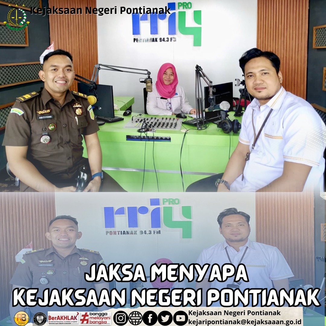 Selasa, 27 Maret 2024, Kejaksaan Negeri Pontianak melaksanakan Program Siaran Jaksa Menyapa di RRI Pontianak dengan Tema “Mencegah maraknya kenakalan remaja di kota pontianak”