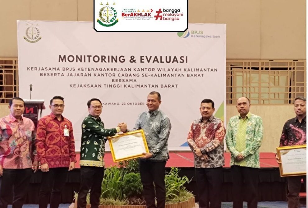 Bidang Perdata & Tata Usaha Negara Kejaksaan Negeri Pontianak Menerima Penghargaan Terbaik 1 Pemulihan Keuangan Negara Jaminan Sosial Ketenagakerjaan Melalui Penyerahan Surat Kuasa Khusus (SKK) & Pendampingan Hukum Periode Januari – September 2024 dalam Acara Menghadiri Monitoring dan Evaluasi Kerjasama BPJS Kesehatan Kantor Wilayah Kalbar beserta Jajaran Kantor Cabang se-Kalbar bersama dengan Kejaksaan Tinggi Kalimantan Barat