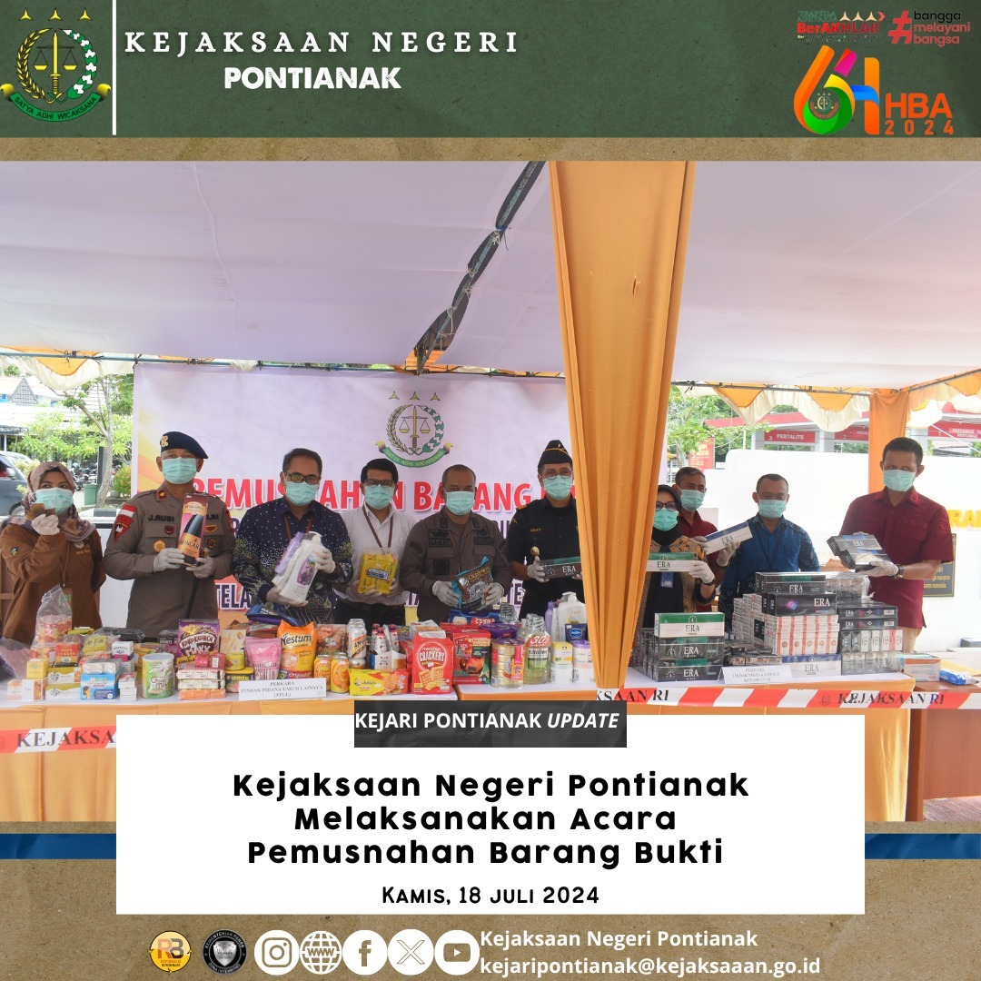 Bahwa kegiatan pemusnahan barang bukti dan barang rampasan merupakan agenda rutin Kejaksaan Negeri Pontianak untuk melaksanakan putusan pengadilan yang telah memiliki kekuatan hukum tetap (Inkracht) sebagai tupoksi Kejaksaan sebagai eksekutor.