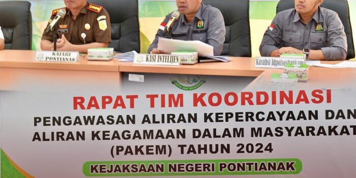 Kamis, 17 Oktober 2024 sekitar pukul 10.00 Wib bertempat di Aula Kantor Kejaksaan Negeri Pontianak, Jl. K. H. Ahmad Dahlan, No.7, Kel. Darat Sekip, Kec. Pontianak Kota, Kota Pontianak, Prov. Kalimantan Barat telah dilaksanakan Kegiatan Rapat Tim Koordinasi Pengawasan Aliran Kepercayaan dan Aliran Keagamaan Dalam Masyarakat (PAKEM) Kota Pontianak Tahun 2024