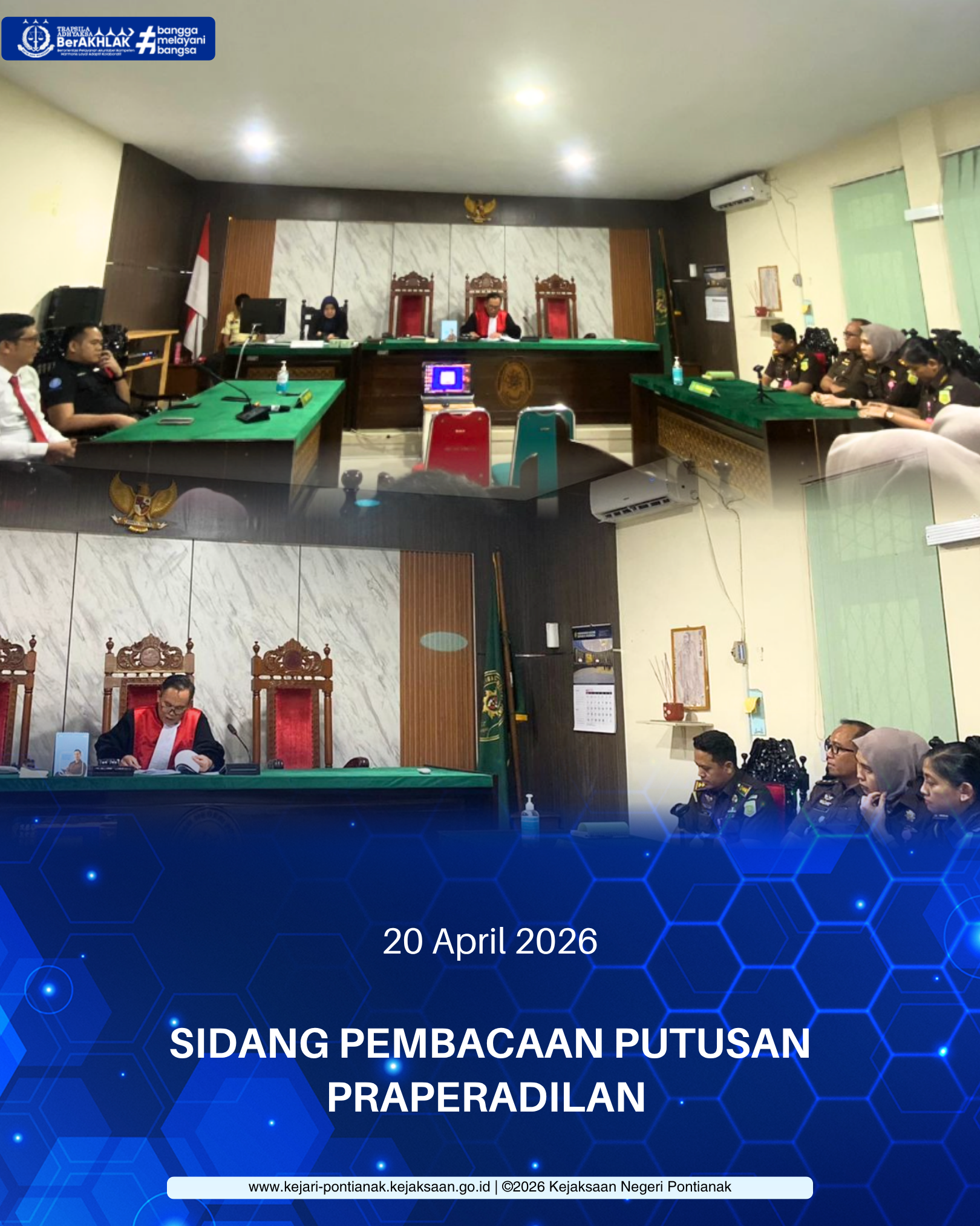 Bahwa pada hari Senin, 20 April 2026 – Bertempat di Pengadilan Negeri Pontianak telah dilaksanakan pembacaan putusan terhadap permohonan pra peradilan dengan Nomor Perkara: 8/Pid.Pra/2026/PN Ptk yang diajukan oleh pemohon berinisial An. RD terhadap Kejari Pontianak selaku termohon. Dimana Hakim tunggal PN Pontianak menjatuhkan putusan